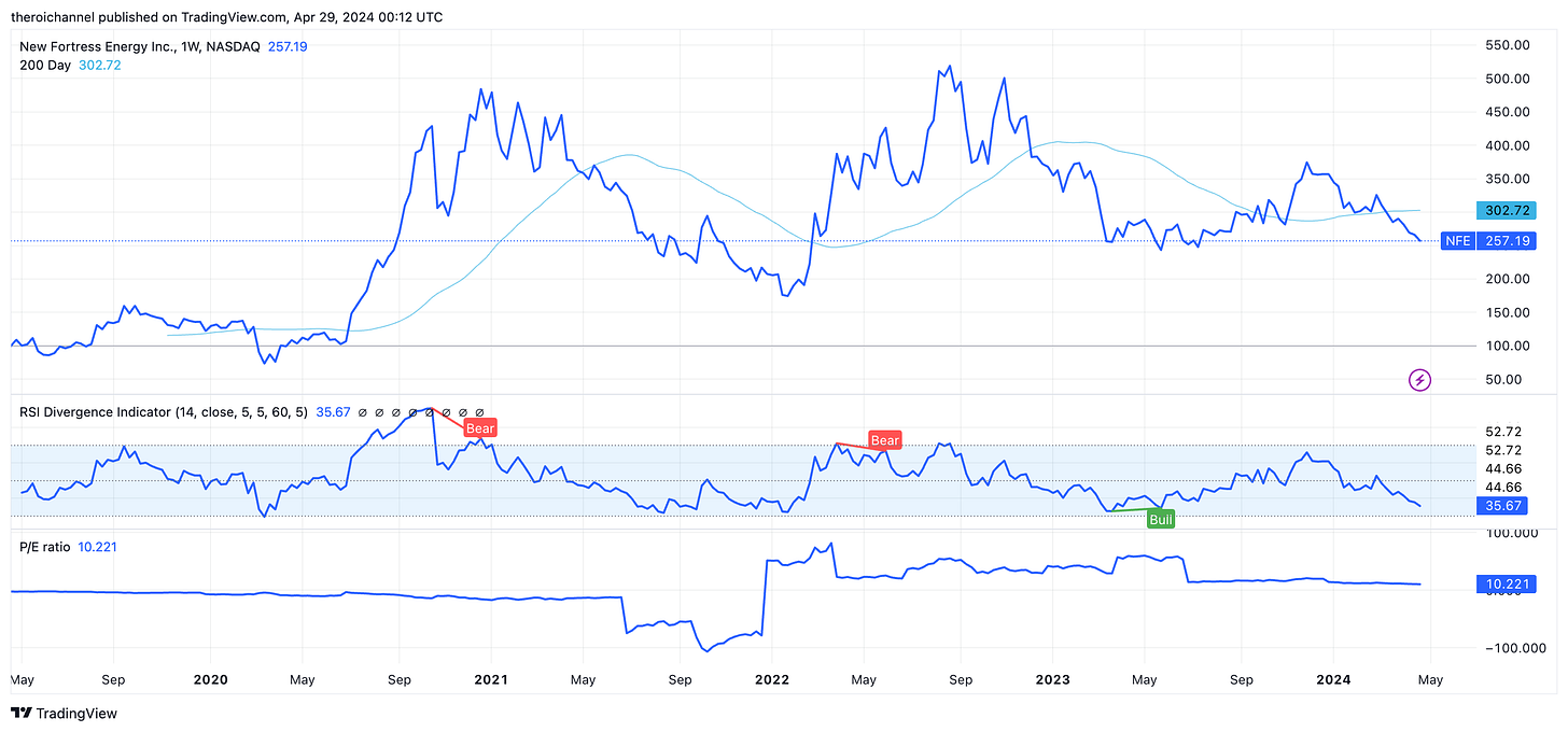 NFE is misunderstood infrastructure/power company trading below it’s replacement cost (Using Market Cap) with no more CAPEX, at 20% free cashflow yield (FCF) + long term contracted sales.