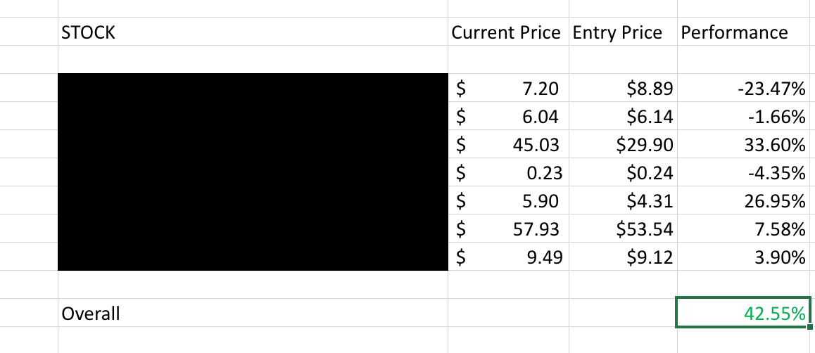 Subscribe to the ROI club today and become a member and gain access to ALL of my analyses + see a live performance breakdown of the stocks I’ve looked at in the excel sheet below ( currently up 42.55 % at time of writing).
