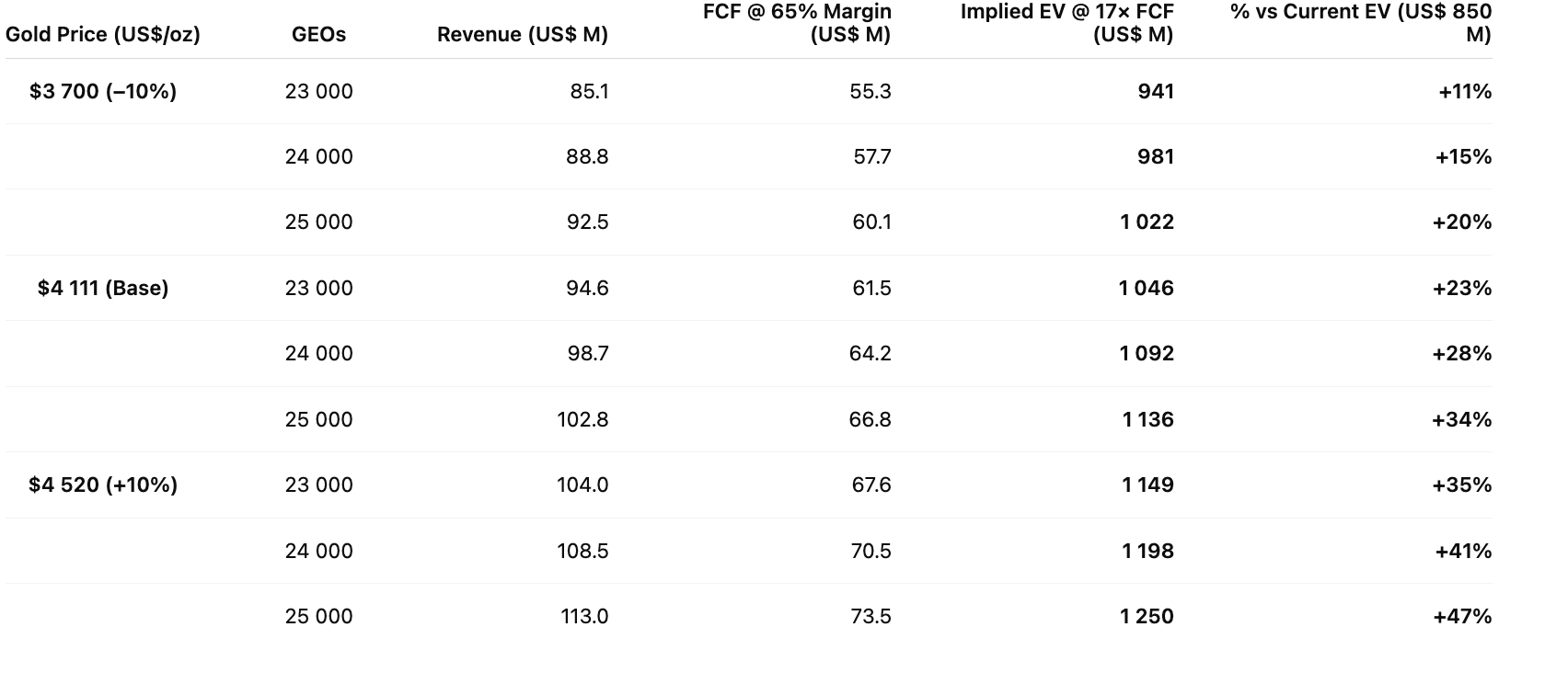 Joining the two companies production estimates for 2026 suggests ~ 22 - 25,000 GEO.