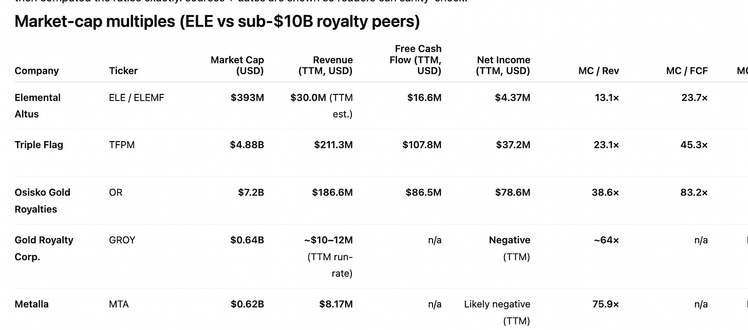 Triple Flag trades at 15x and 25x Free cash flow (FCF) while OR Royalties trades at 20x Revenue and 29x FCF. Mind you, this is using analysts’ NTW estimates and they are usually far more conservative in their underwriting of expected commodity prices than I.