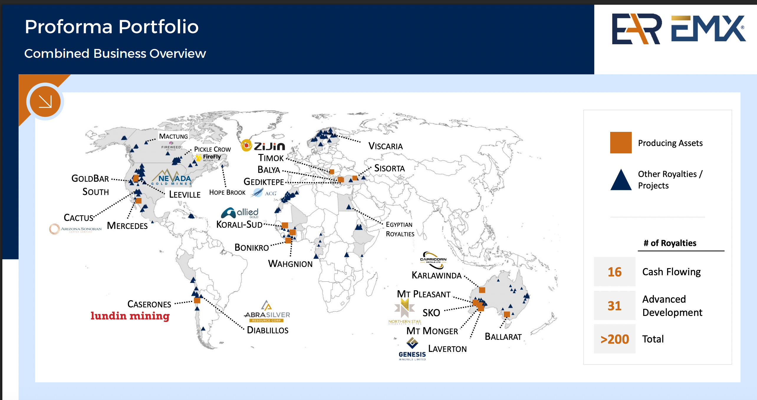 In terms of pipeline OR holds 195 Royalty contracts on its books, 21 of which are producing which to me is not a particularly compelling reason for it to trade at more than 6x the Market Cap of the new Elemental Royalty Corp albeit they hold an enviable royalty on Canadian Malartic.
