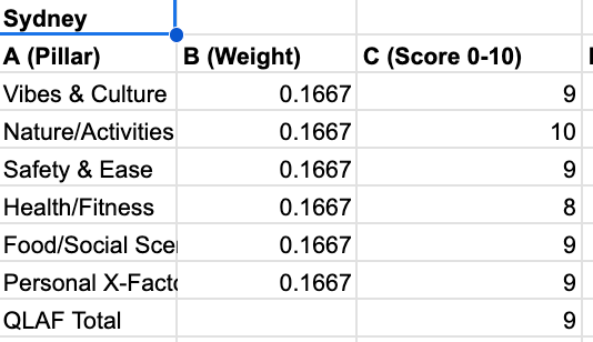 It is also impossible to objectify, however the QF is my attempt to calibrate - as best one might - the difference in quality between the time spent in various locations.