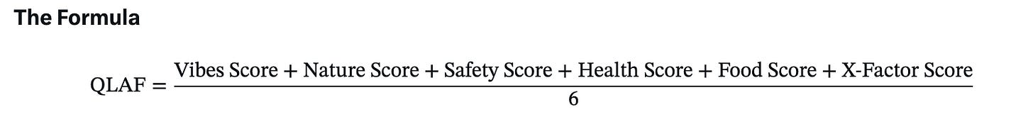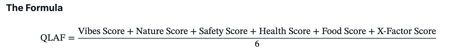 That’s where the Quality Factor comes in: a simple way to measure how much life or enjoyment a given location adds to your freedom yield.