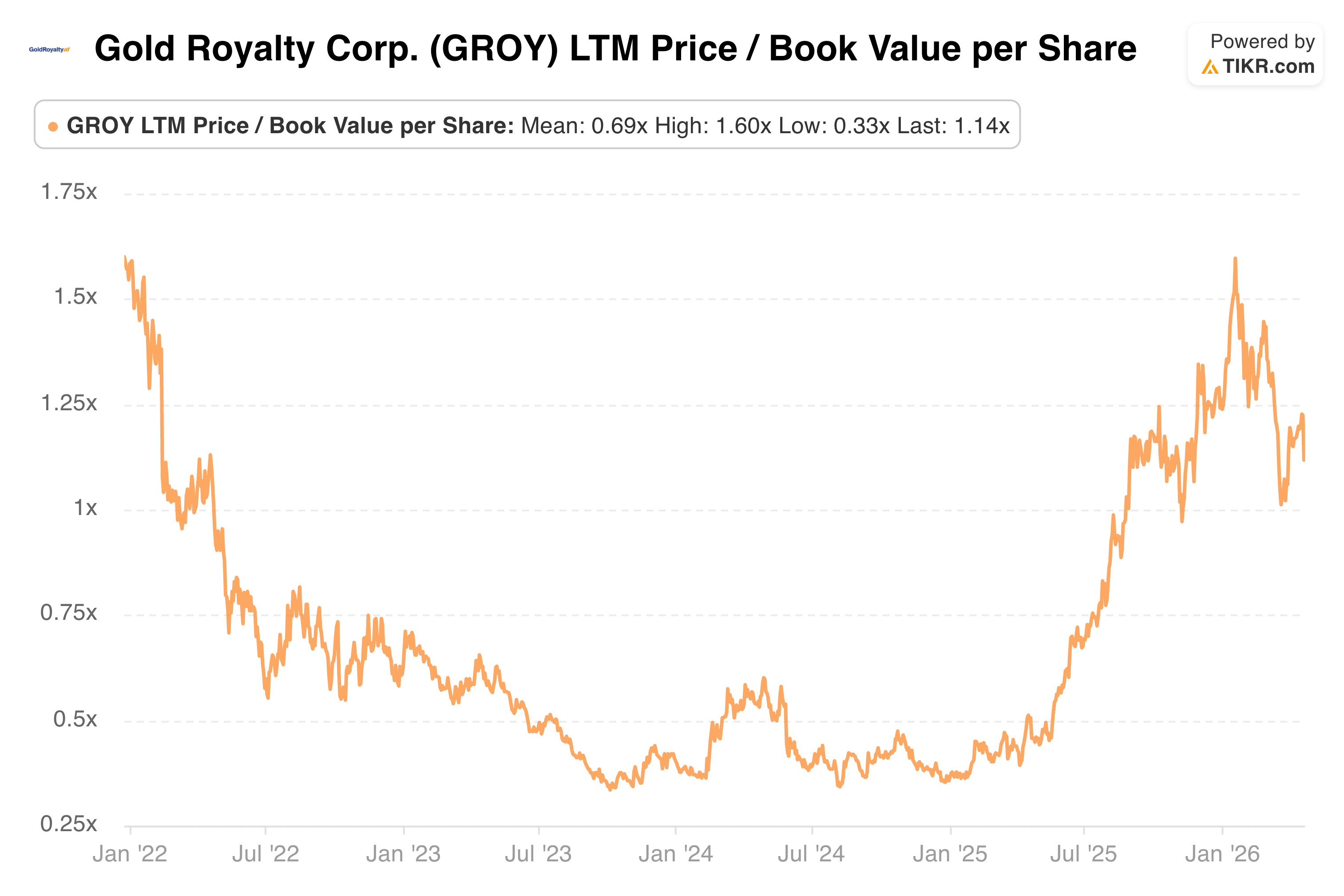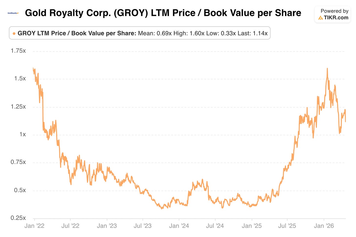 In the winter of 2024 I became aggressively bullish and, I daresay, rather vocal on a sub-sector of the market that exhibited the unusual circumstance of quality assets trading at extreme discounts to book value. Junior royalty companies were changing hands at sub-0.5× BV. One in particular; Gold Royalty Corp, had reached approximately 0.3× book, which inspired me to write several pieces and build it into a high-conviction position. Hindsight is 20/20, but this really was a lay-up. The stock re-rated to above 1× BV, from $1.20 to $5.18 in little more than a year.