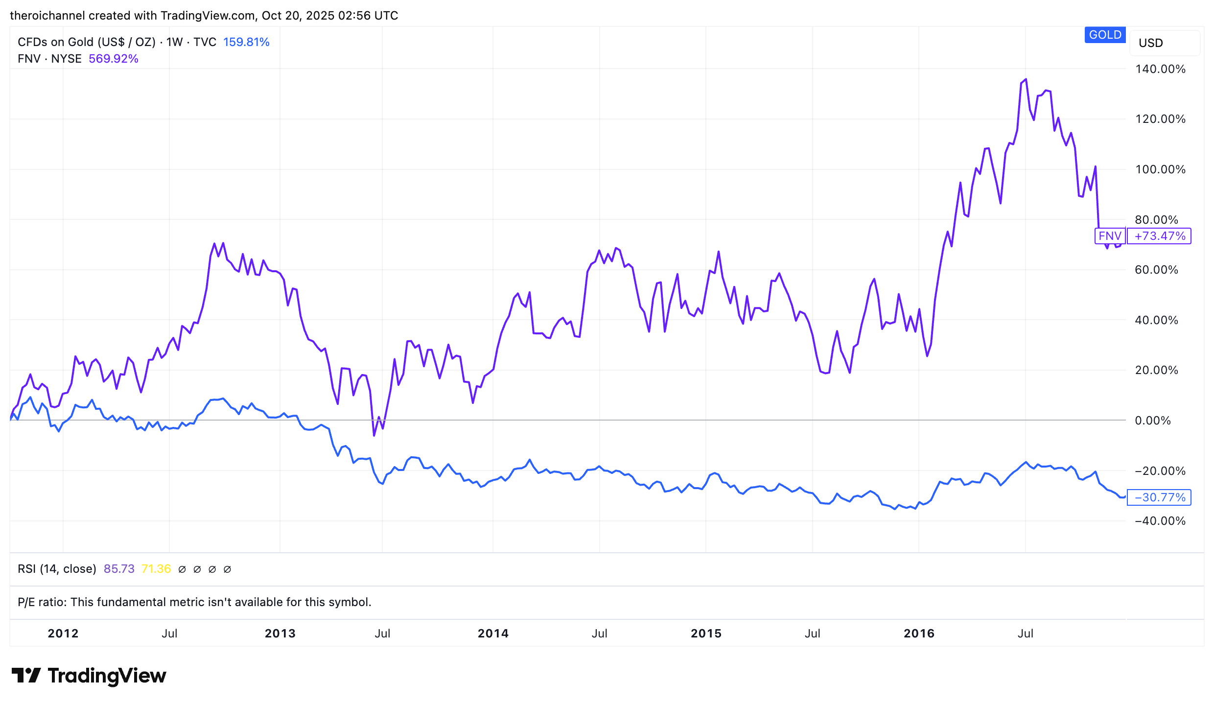 FNV has also diversified somewhat away from its traditional gold royalty business however the main reason for its divergent performance is the shut down in Cobré Panamá which shut down November 28, 2023.