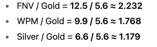It will be recalled that the calculations also do not consider dividends which currently stand close to a 1% yield for FNV and WPM.