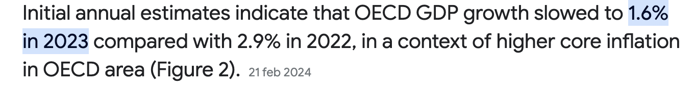 Since 2021 I’ve felt the OECD nations are in for some stagflation, the latest data seem to suggest that is indeed playing out: