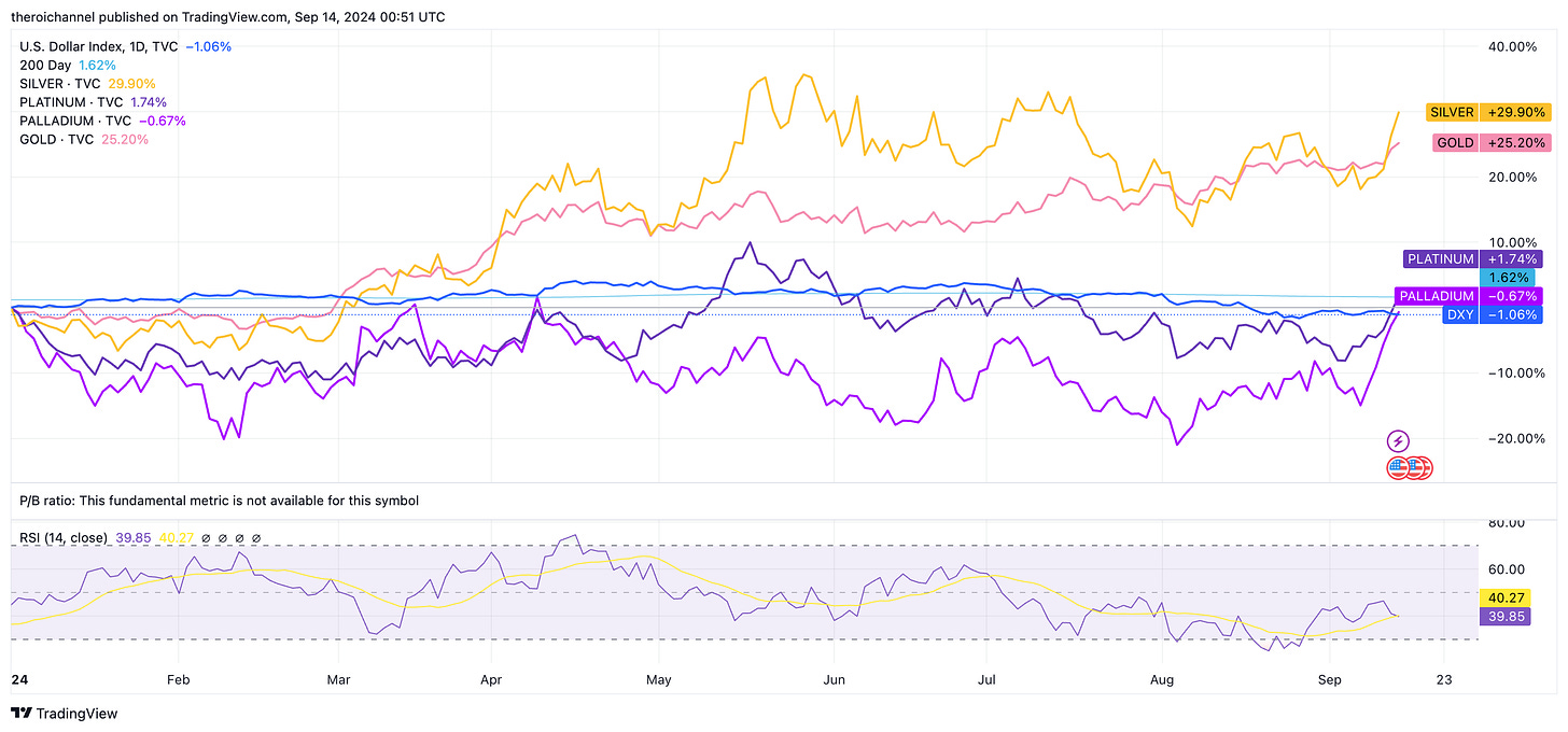 Now onto Platinum and Palladium which are sharply inflecting back up after being in the doldrums. Most likely due to the announcement that one of my irresistible