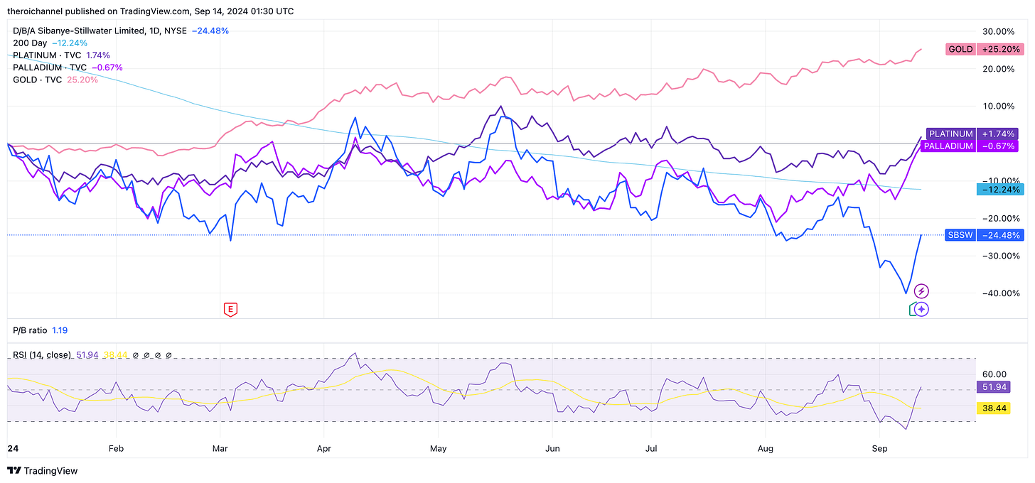 degenvalue plays, SBSW will close 50% of their US production. I estimate SBSW’s announcement could reduce oncoming global supply by 1-3% in an already tight market. I can’t help but be amused here as when I started talking about this thesis it was all about political risk in South Africa, whereas last week everyone on X was spreading nonsense about their imminent bankruptcy due to high cost USA production. The company has refinanced their most imminent debt maturities and is doing wonderful pre-paid forward sales of their gold production. Liquidity is there with roughly $2.8 Billion in current assets and only $1B in current liabilities. IMHO it has ample room to wait until PGM basket prices rise above their levelled ASIC ($1,250 ish) in which case the thing is a call option with no expiry date on a PGM bull market, with reserves multiple times higher than the current Enterprise Value, free overview here: